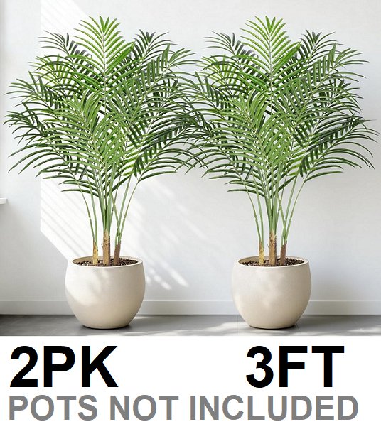 2PK FAUX ARECA PALM TREE plants - 3ft - White/green