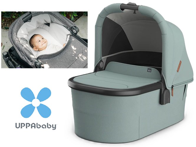 uppababy bassinet v3 with mattress, sheet and bug shield - Compatible with Vista, Cruz & ridge Strollers - Kenzii mystic aqua/teal (model: 0903-bas-na-knz)