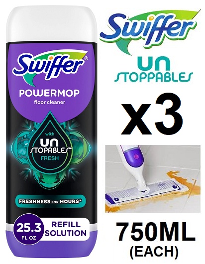 3 SWIFFER UNSTOPABLES POWERMOP FLOOR CLEANER - 750ML - FRESH SCENT