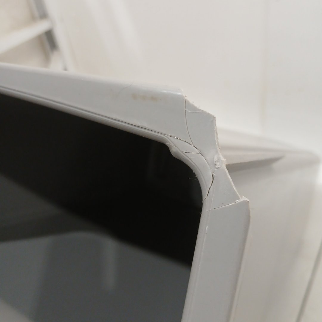 Item has scratch marks and scuffs from previous light use, as well as a cracked corner. (final image)