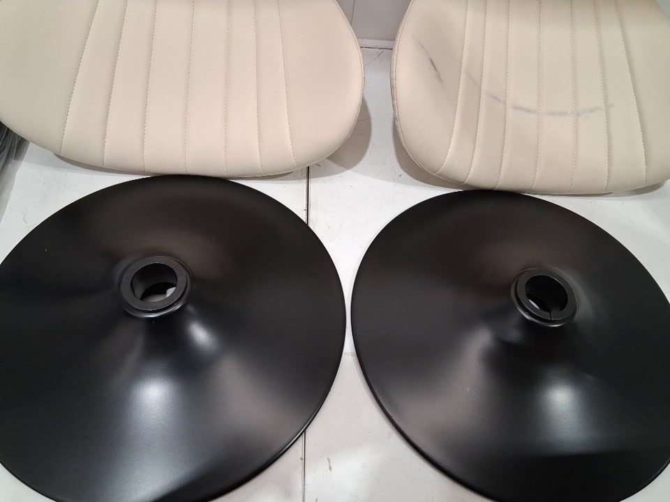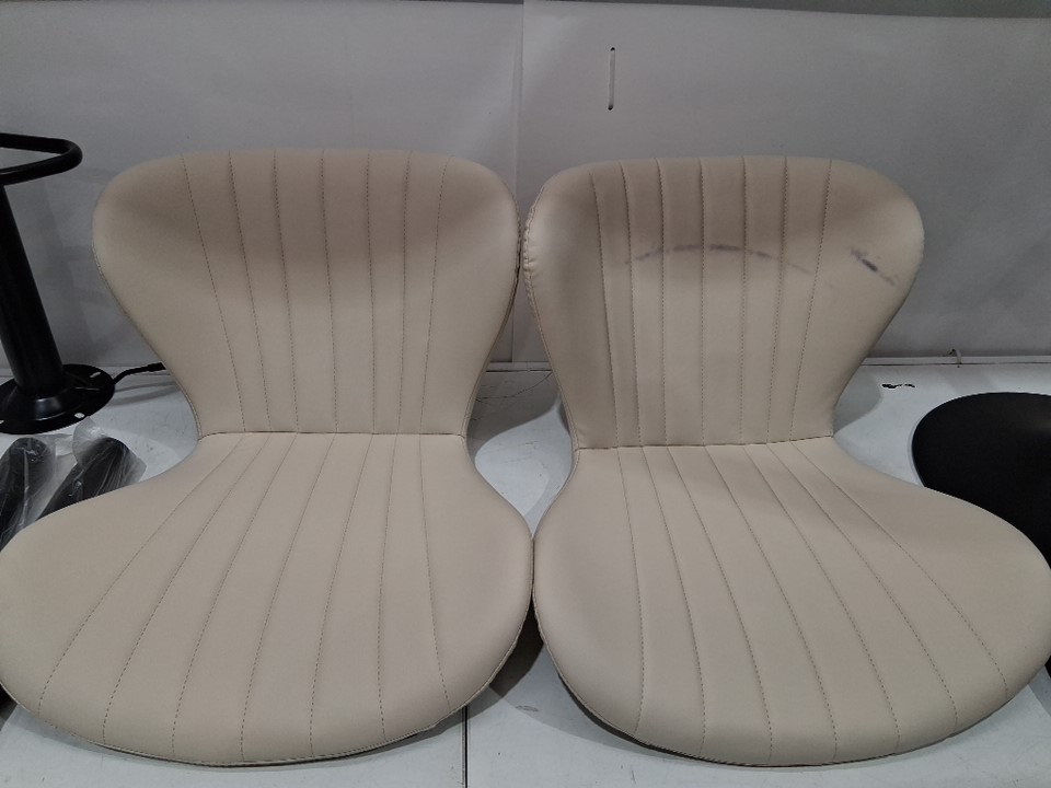 One chair back has staining likely from shipping and handling/rubbing against black base parts (see photos).