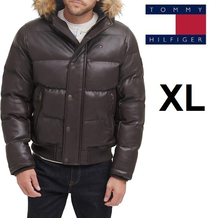 men's tommy hilfiger arctic cloth quilted snorkel bomber jacket/winter coat - large - BROWN (style: 159AU171)