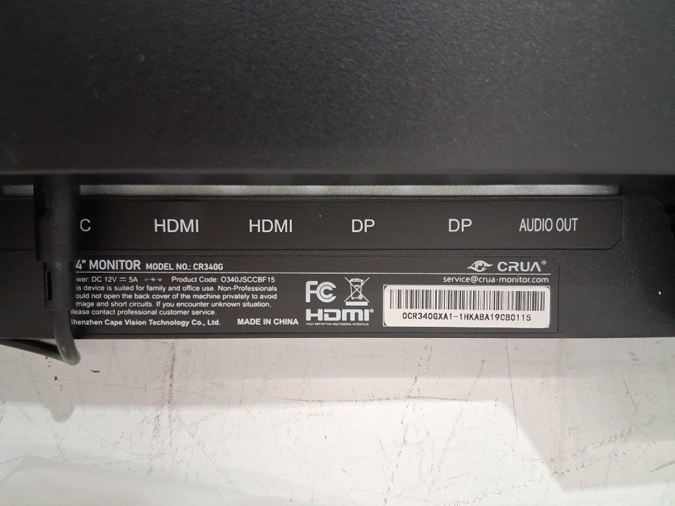 crua 34" Curved Gaming Monitor, Freesync, HDMI 2.0 & Displayport 1.4, 21:9 WQHD - 144Hz -1500R - black - (model:cr340hdu)