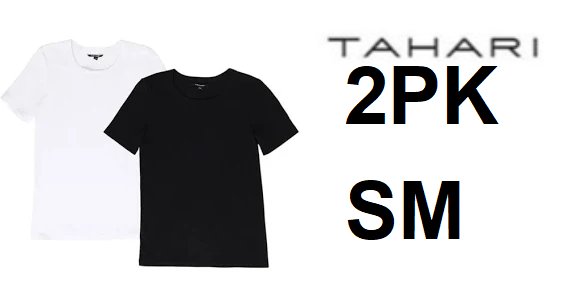 2PK Women's Tahari Ribbed Cotton Short Sleeve T-Shirts - small - black/white (Style: 2868740)