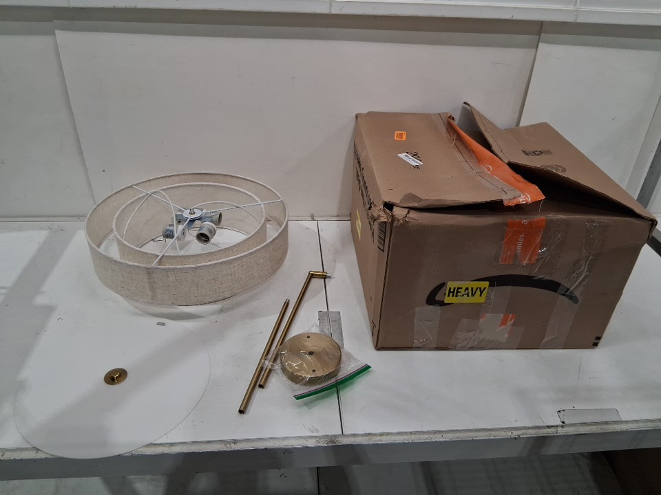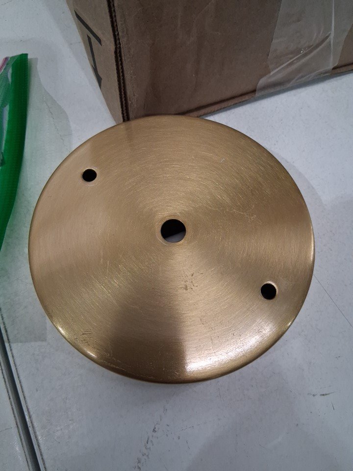 The wires appear slightly distressed and there are some scratches on the brass bass indicating previous handling and possible installation/use. Please note that there is a dent in the interior layer of the shade (see photos) Unable to test