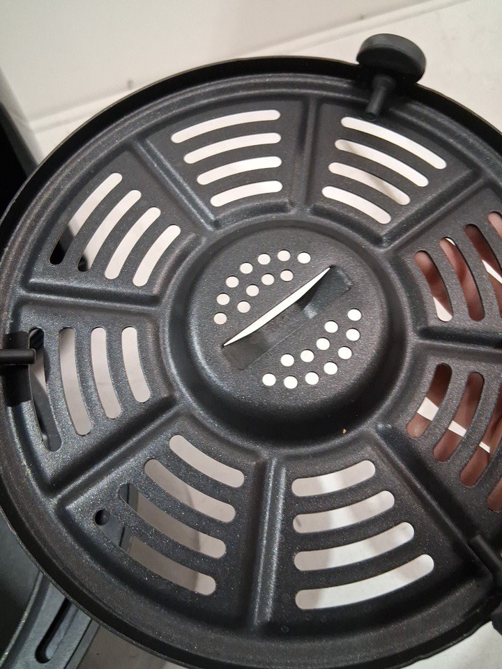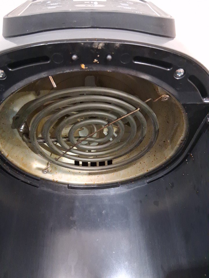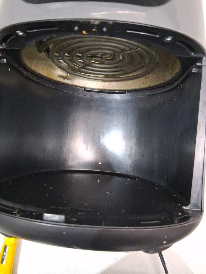 item has some light food residue in cooking basket and some grease spots in cooking chamber from previous light use item was tested for basic power