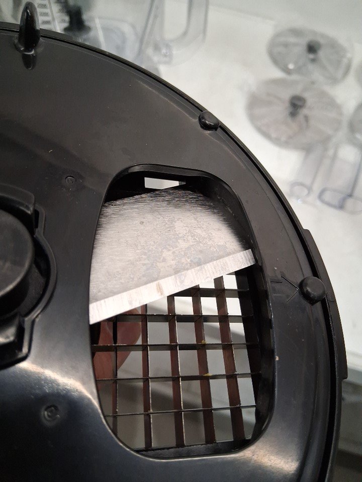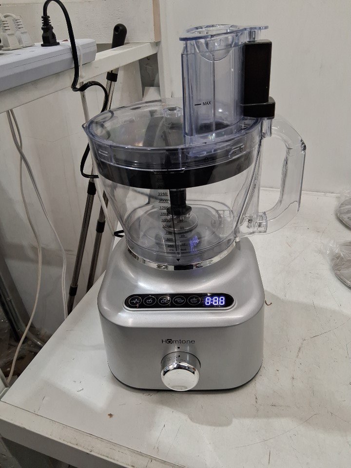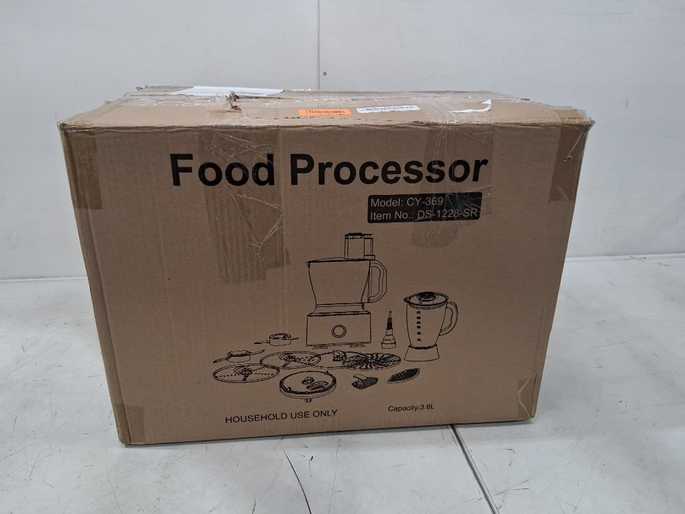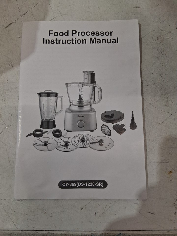 There are some light stains on the blade and some residue on the inside of the processor indicating some prior use - see photos. Outside of being used, all parts appear present and in good condition, and there are no apparent issues with the processor's functions. Tested for power.