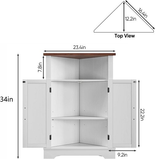 Mino Kesper Floor wooden Corner Cabinet with Door - 12" x 23.4" x 34" - white - (model:hz-sjag203wh)