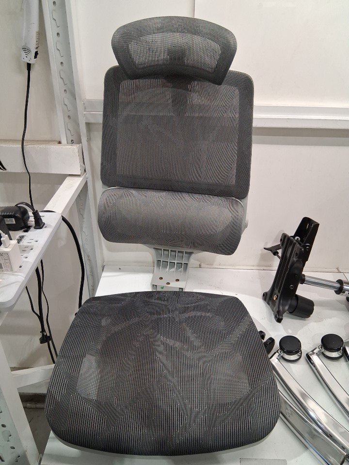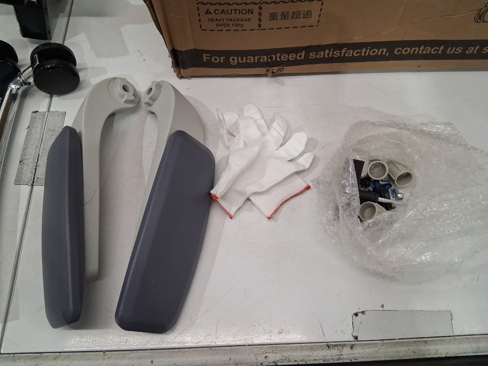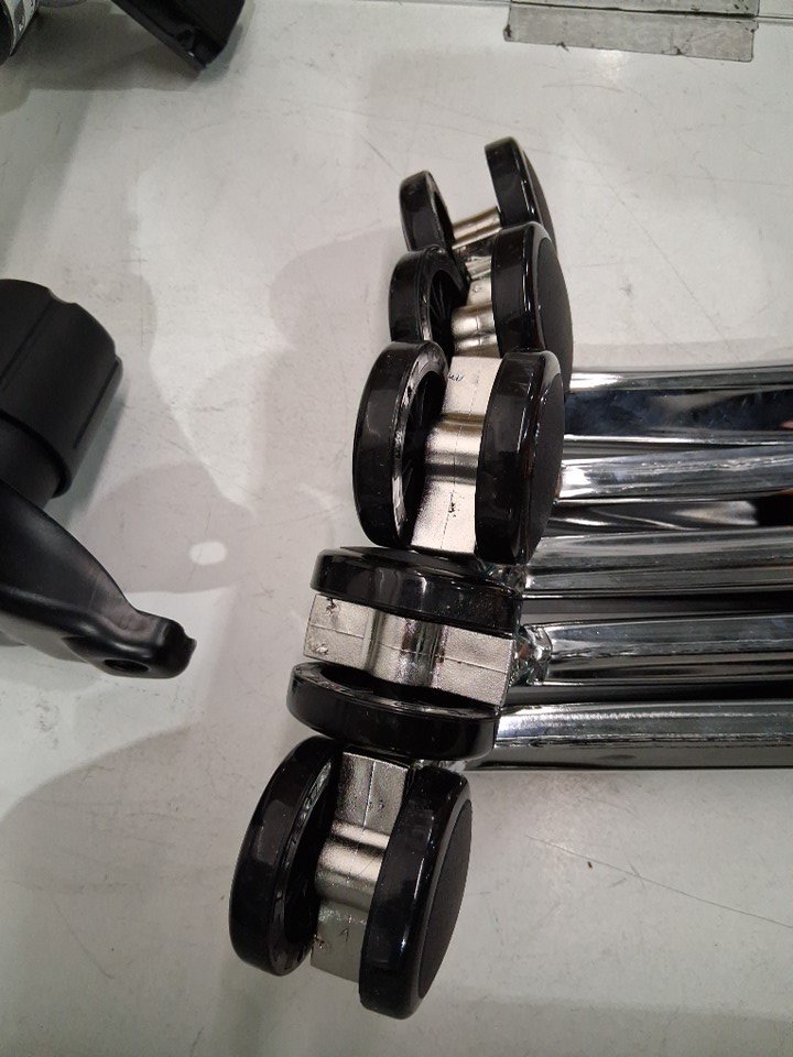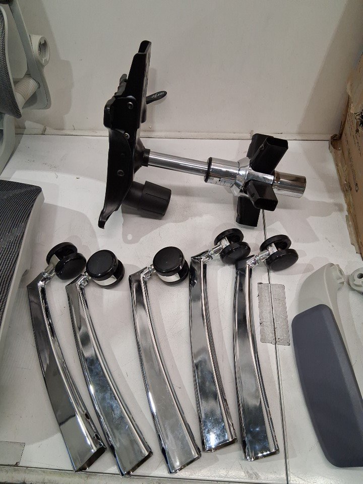 Please note that the chair is partially assembled, but there is now wear on the wheels indicating that it has not been previously used (see photos)