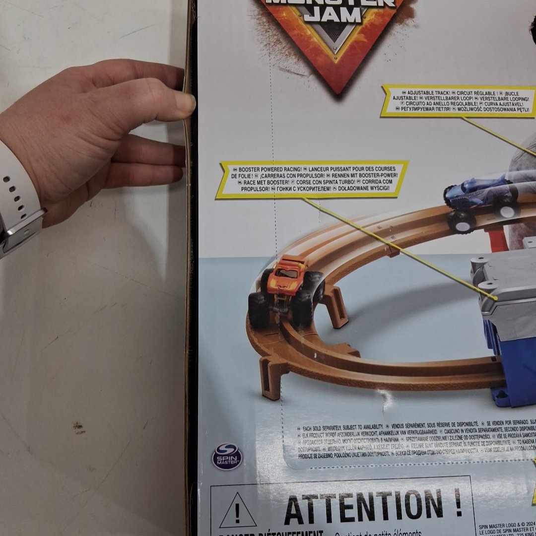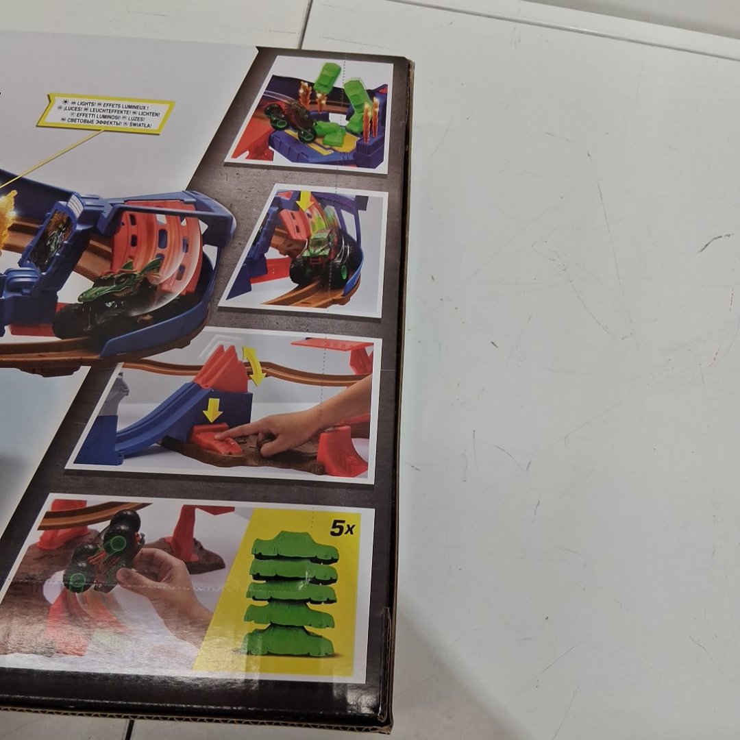 kids Monster Jam Supercharge Speedway Light Up World Finals Track Playset with Megalodon and El Toro Loco Die-Cast Monster Trucks