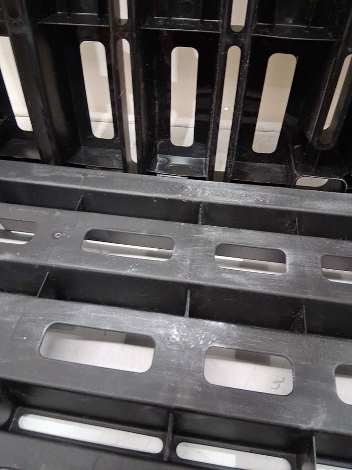 Product has some light cracking in the middle thinner plastic parts and some dirt throughout (See photos)