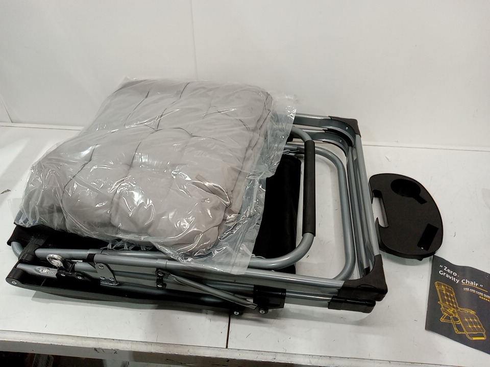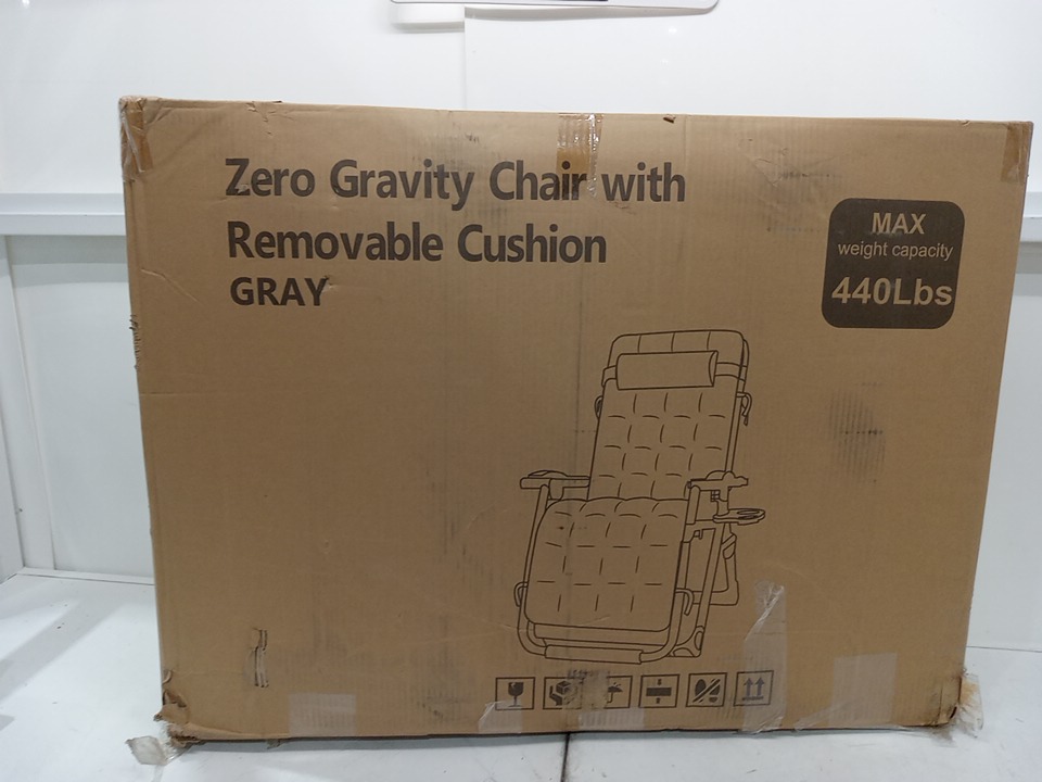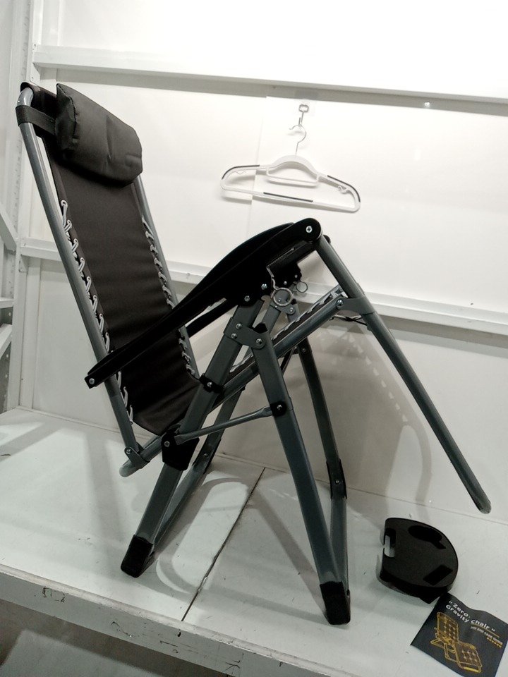 Zero Gravity Chair LOUNGE WITH Removable Cushion Cup Holder and Footrest - 440LB CAPACITY - 26" - GREY