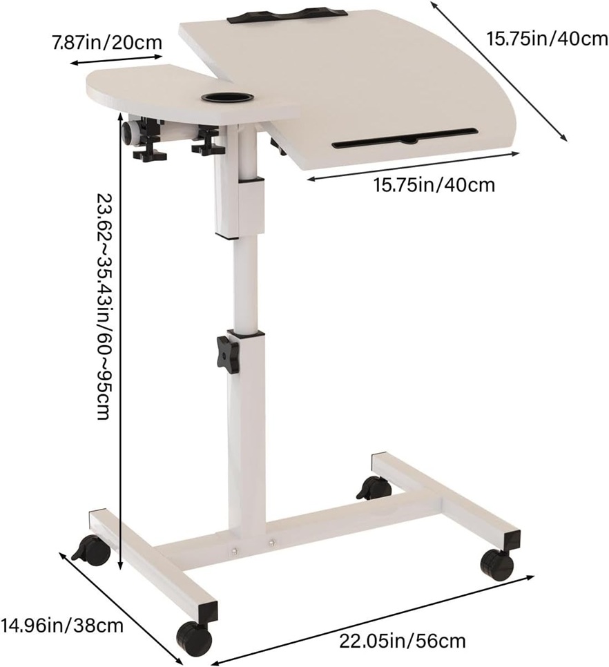 Overbed Tilt & Swivel Tray Table with Wheels & Cup Slot - 16" x 24" x 35" - White