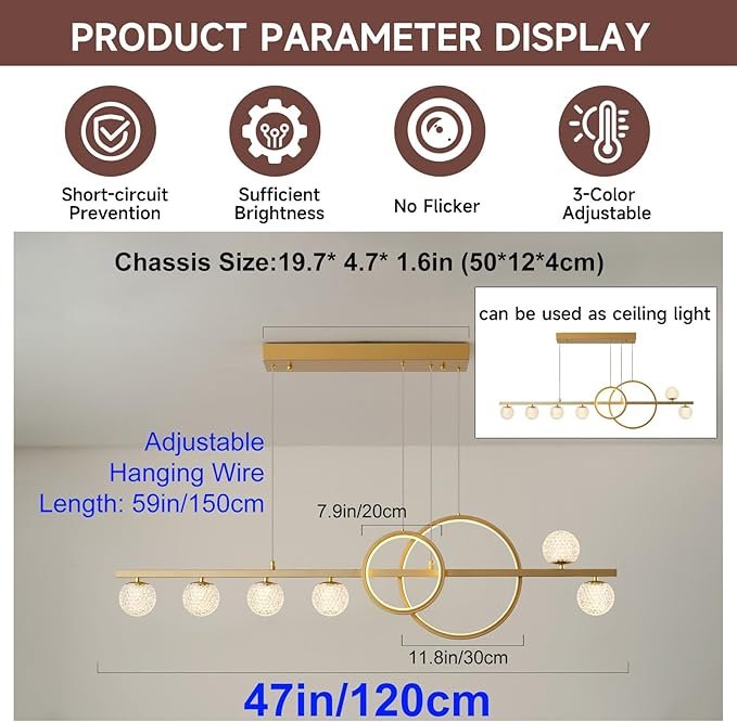 ORANOOR Modern Chandeliers with Remote- 47"- 3000lm- gold (model: 8855-G)