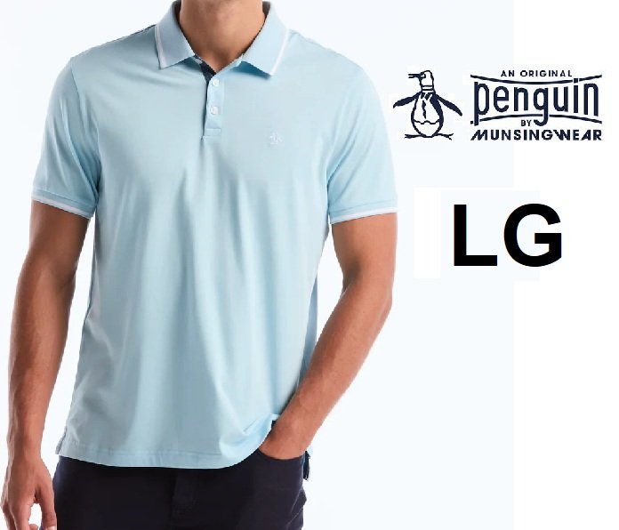 MEN'S an original penguin by munsing wear short sleeve tipped jersey polo - large - cool blue (style: 1850193)
