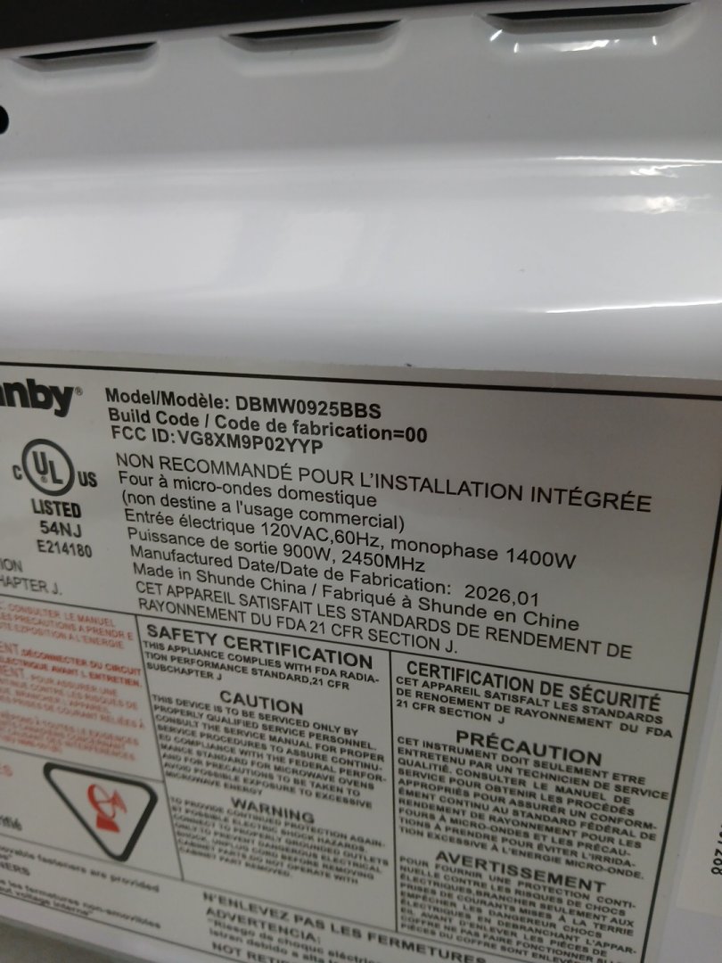 Danby Countertop Microwave - 900W - 0.9 CUFT - BLACK/STAINLESS STEEL - (MODEL:DBMW0925BBS)