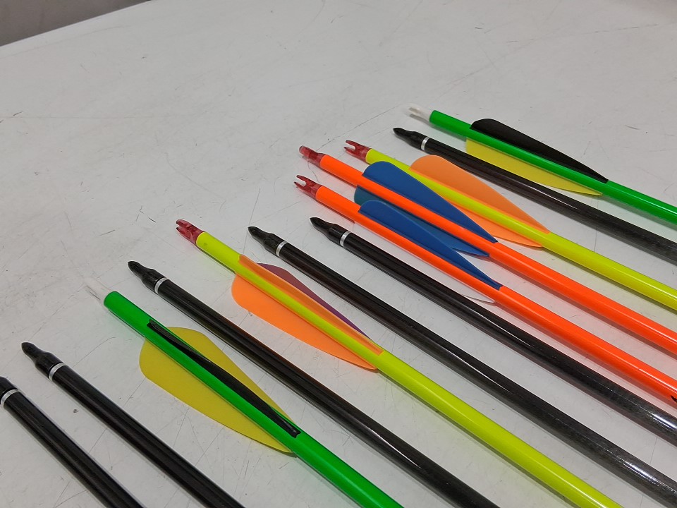 12PK Huntingdoor Archery 31" Carbon Arrows 400 Spine Targeting Arrows for Recurve or Compound Bow with Coloured Fletchings Screw in Tips