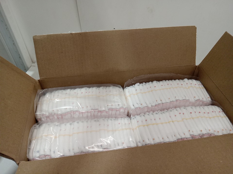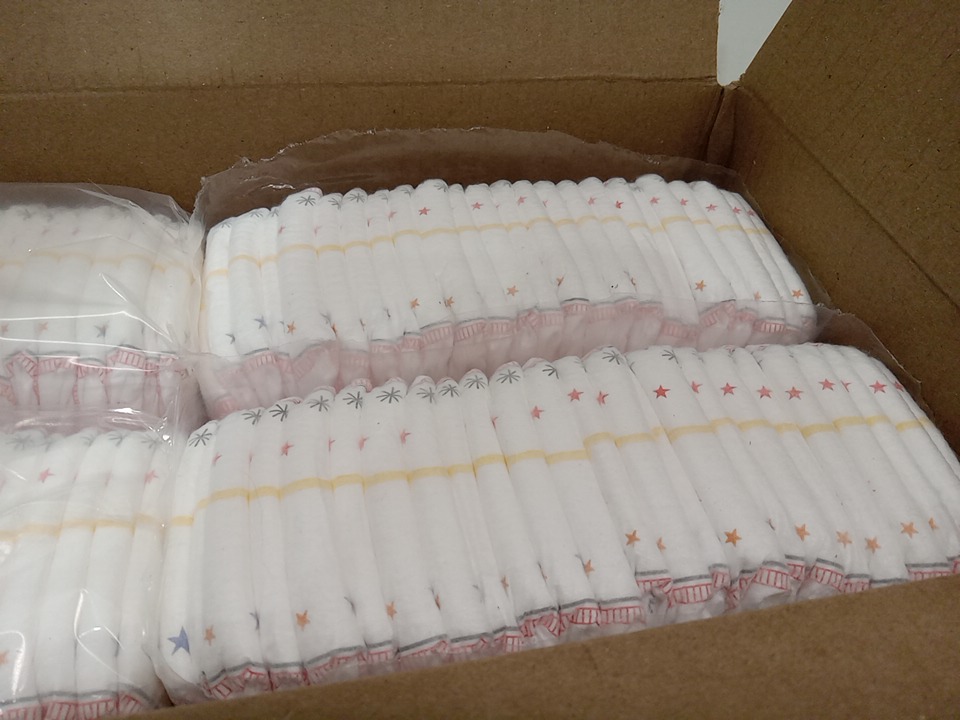 Two of the sleeves are open but all diapers appear present and in new condition.