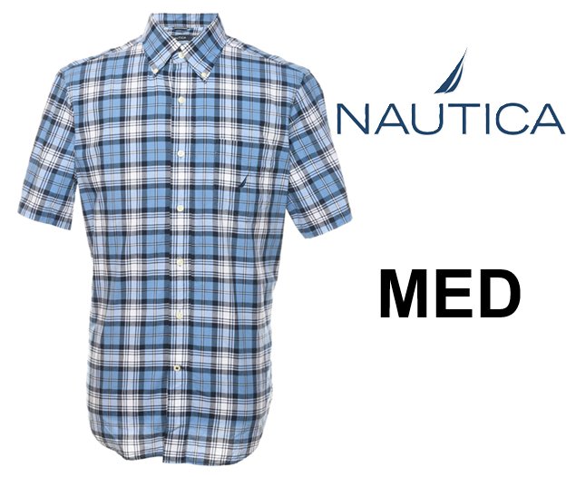 MENS Nautica Short Sleeve Checked Shirt - medium - blue/white (style: 3939001)