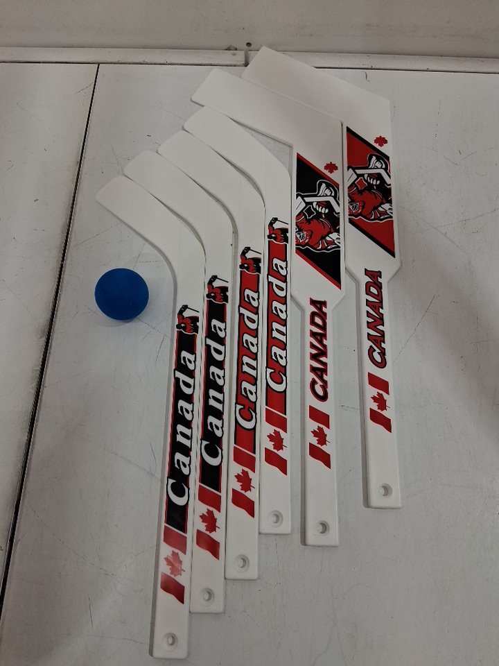 7PC CANADA RED MINI-HOCKEY STICK SET with 6 STICKS AND A BALL - WHITE/BLACK/RED