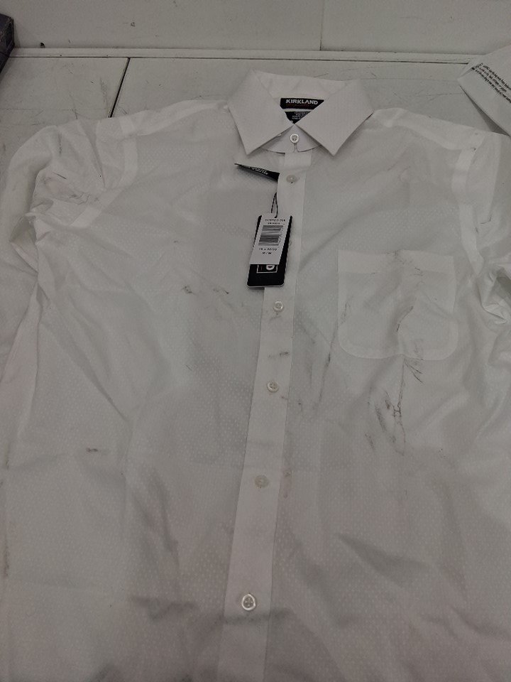 Men's Kirkland signature wrinkle free stain resistant dress shirt - medium - 15 x 32/33 - white - (Style: 3918210)