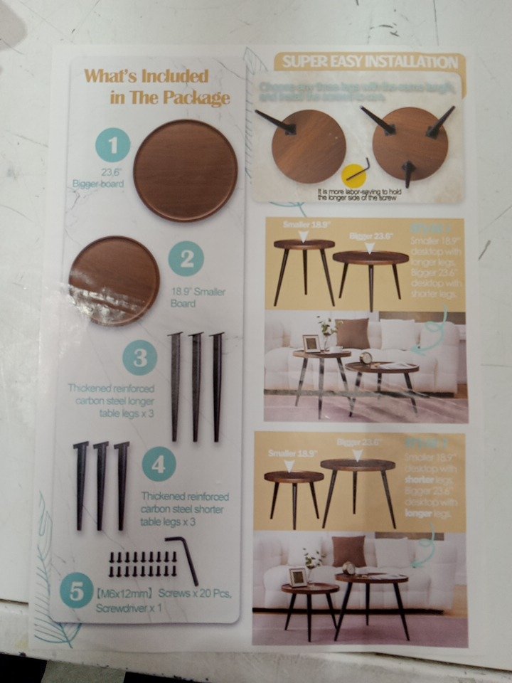 2pc modern style nesting coffee table - 18.9" small table and 23.6" large table - 178lbs load capacity - walnut