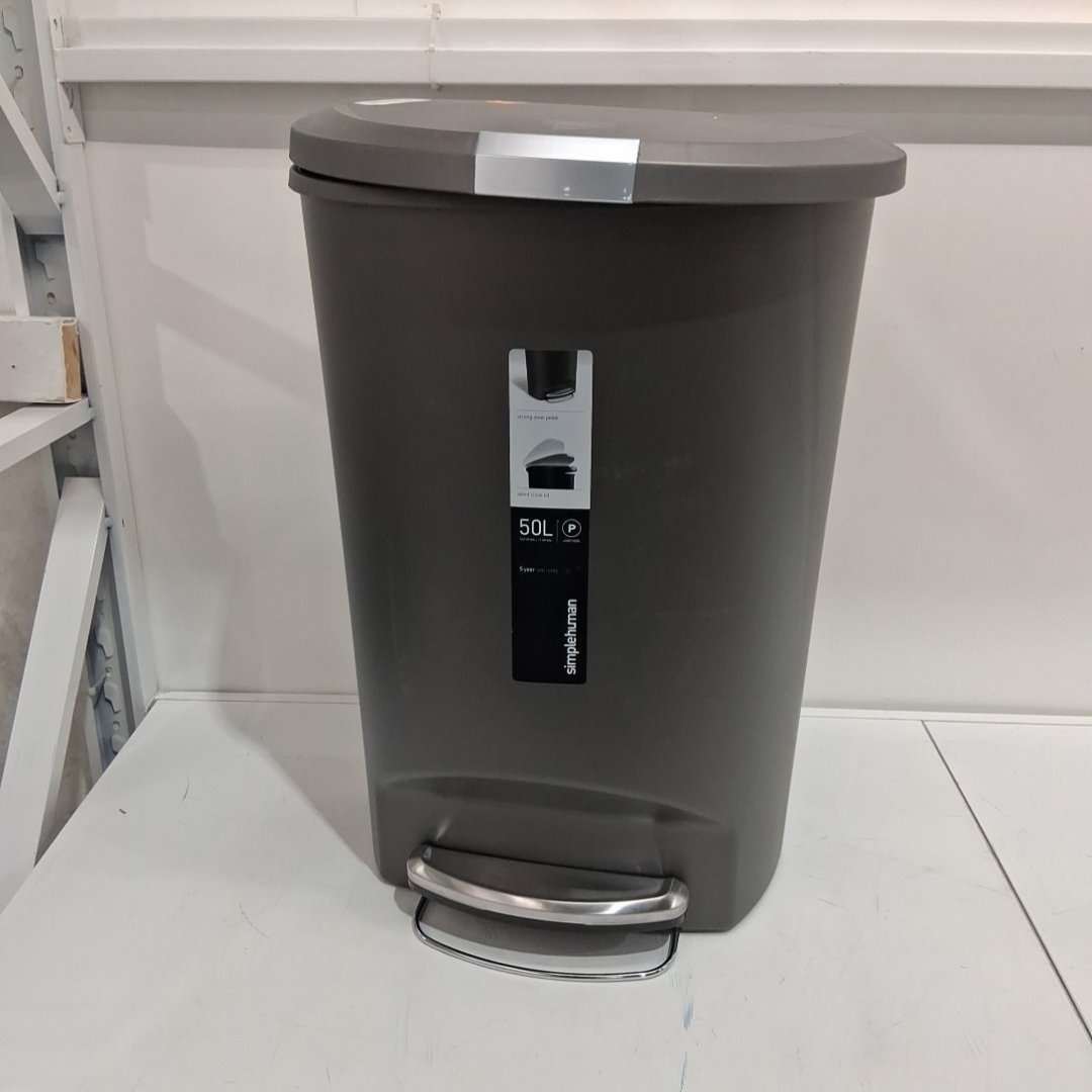 SIMPLEHUMAN PLASTIC SEMI-ROUND STEP-ON TRASH CAN WITH PET LOCK - 50L - GREY