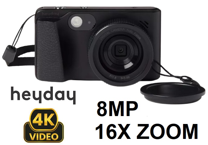 Heyday Digital Camera with 16x digital zoom - 8MP Photos - 4K Video - Black (Model: 056 10 0060)