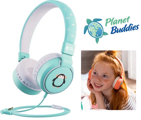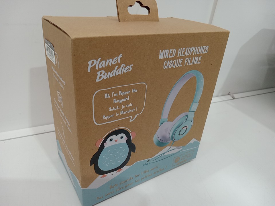 Kids Planet Buddies "Pepper the Penguin" wired headphones with adjustable headband - blue