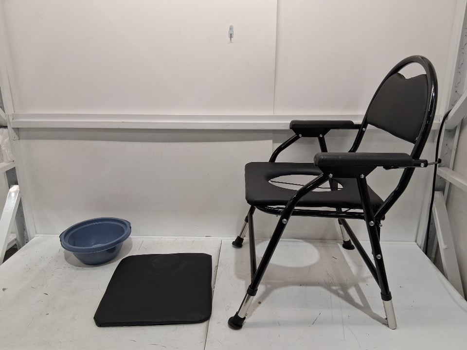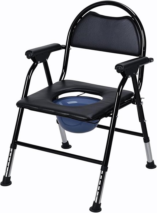 Bedside Commode Chair with Padded Seat and Backrest - black
