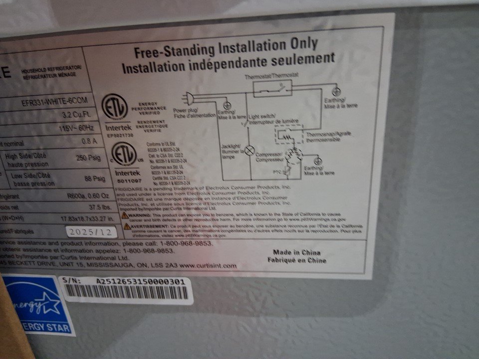 Frigidaire compact Mini fridge with chiller and Eraser Board door - 3.2cu.ft. - white (model: EFR331-white-6com)
