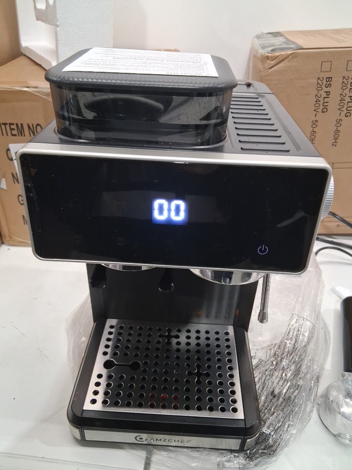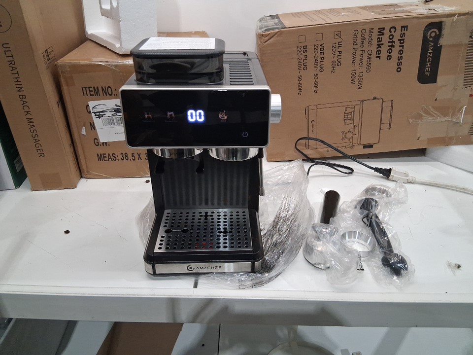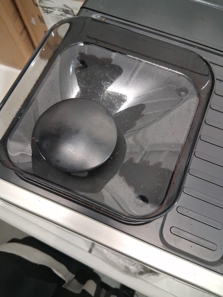 coffee maker has been used previously. some coffee beans remaining. tested for power.