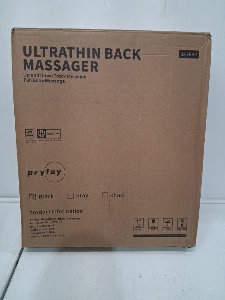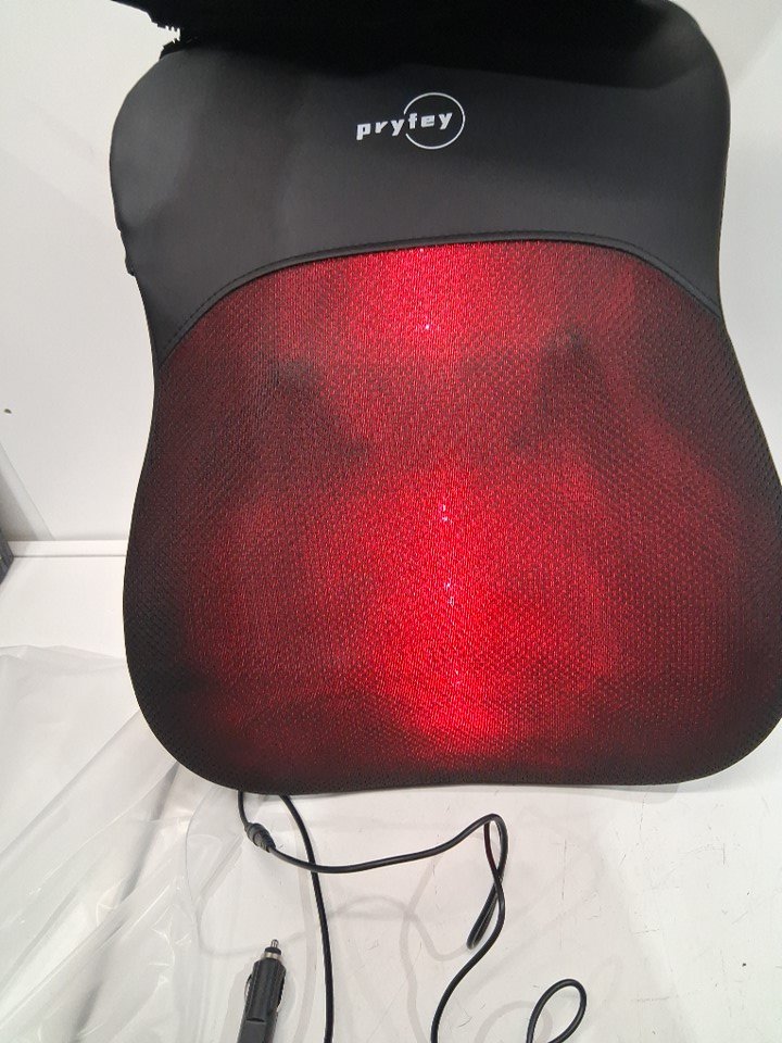 Pryfey Heated Ultrathin Back Massager With 4D Kneading - 17" x 21" - Black/Grey (Model: BKYB-01)