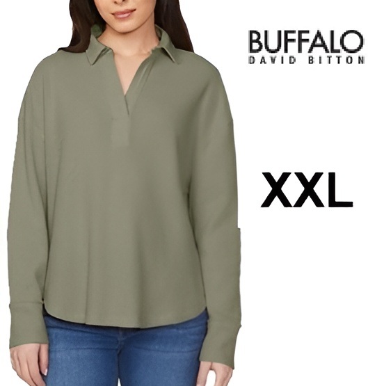 women's Buffalo david bitton Waffle V-Neck Collar Top - xxl - green (model: 1913894)