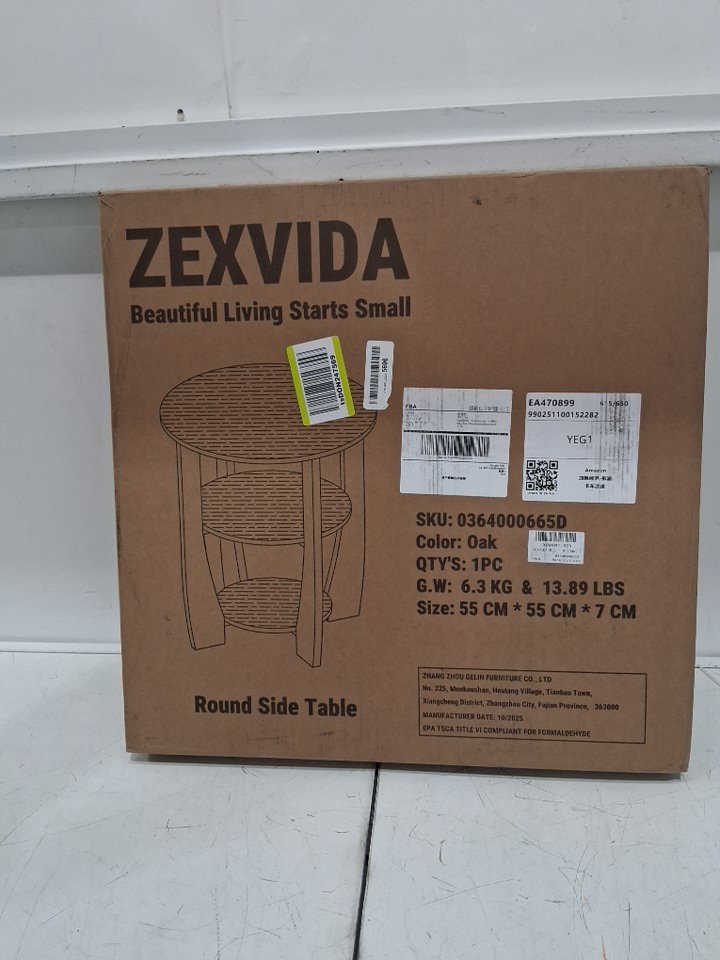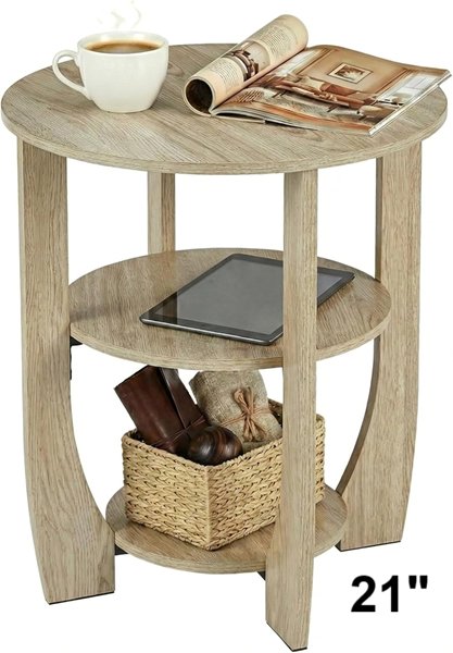 ZEXVIDA 3-Tier Round End Table with Storage Shelf - 19.7" x 21" - beige