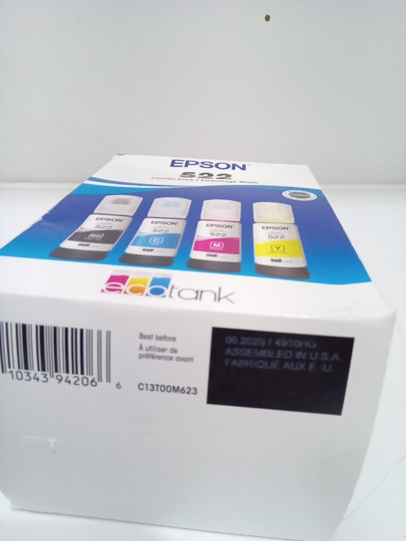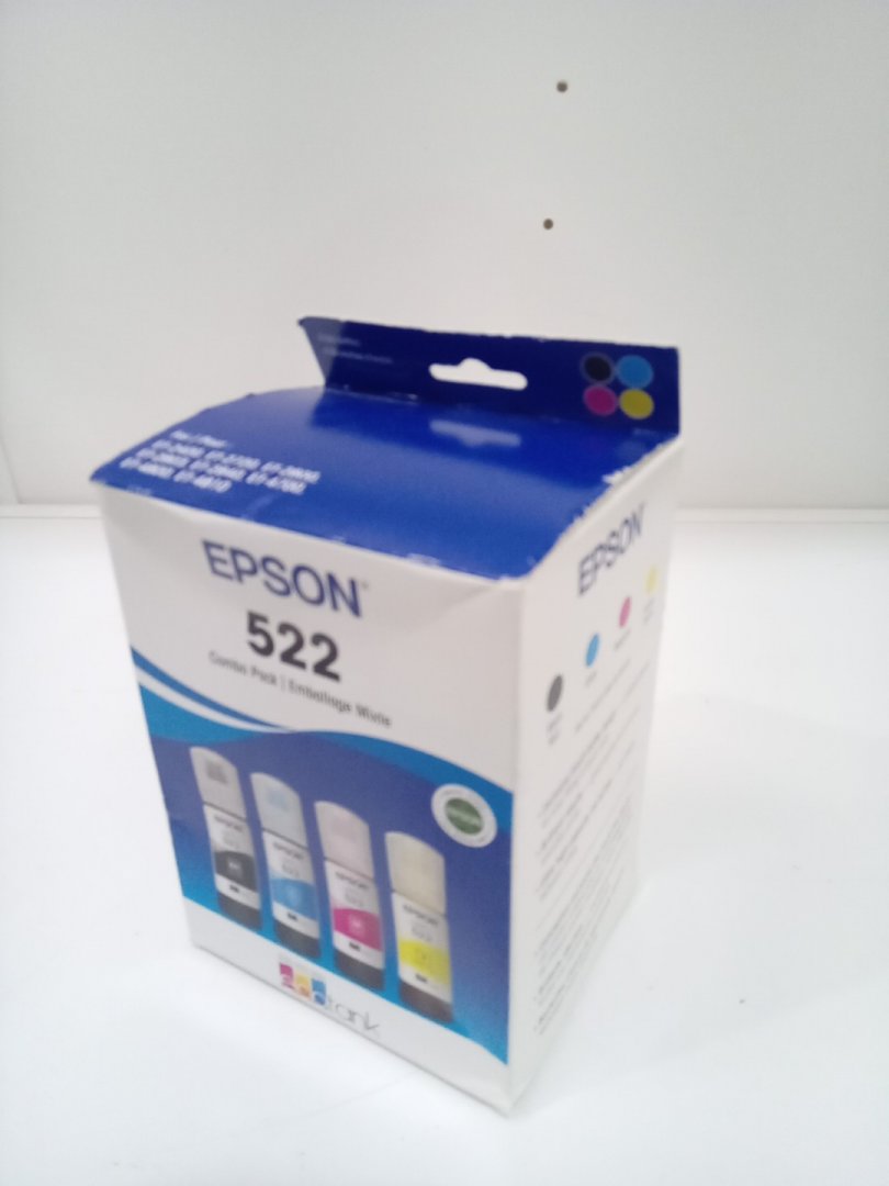 4PC Epson 522 Combo Pack Ink Refill Bottles for Select EcoTank Printers - 65mL Each - Black, Cyan, Magenta, Yellow (Model: T522120-BCS)