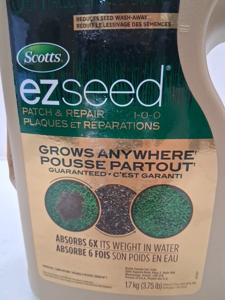 scotts ez seed patch & repair 3-in-1 mix of super absorbent mulch, premium grass seed and slow release fertilizer - 3.75lb/1.7kg (model: 0161)