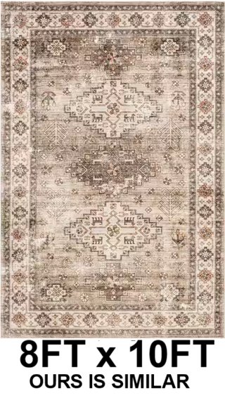 Vintage designed area rug for living space - 8ft x 10ft - beige