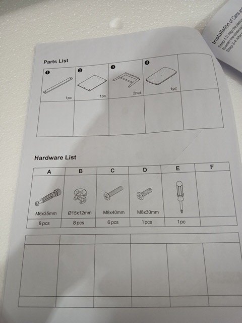 *GENERIC CONDITION STATEMENT* Additional generic hardware may be required for full assembly / installation. Generic hardware may include (but not limited to) screws, bolts, nuts, washers, power adapters / cables, HDMI cables, batteries, etc.