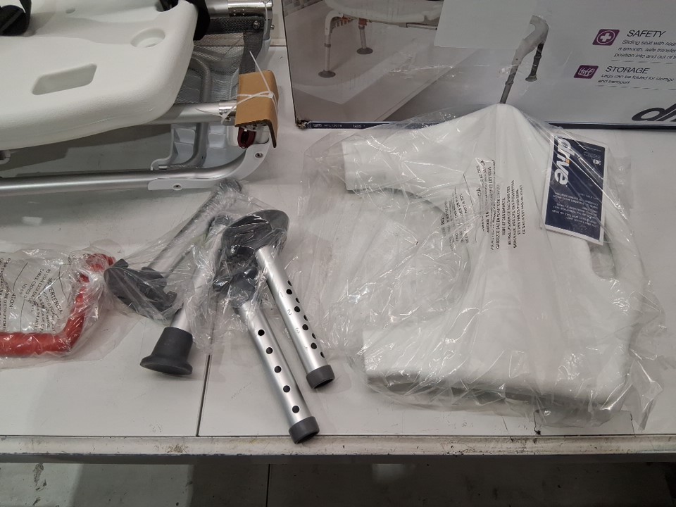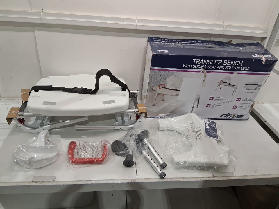 DRIVE medical UNIVERSAL BATHTUB TRANSFER BENCH WITH SLIDING SEAT AND adjustable LEGS - UP TO 300LBS - WHITE (MODEL: RTL12075)