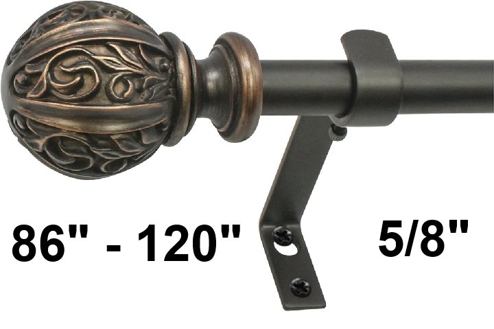Decopolitan Leaf Ball Curtain Rod Set - 86" - 120" - 5/8" Rod - Bronze - (Model: 29992-48VB)