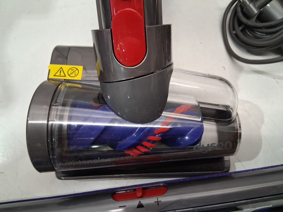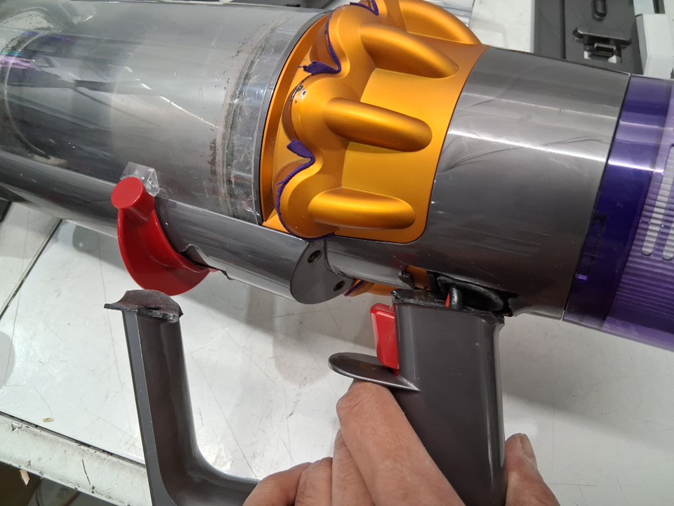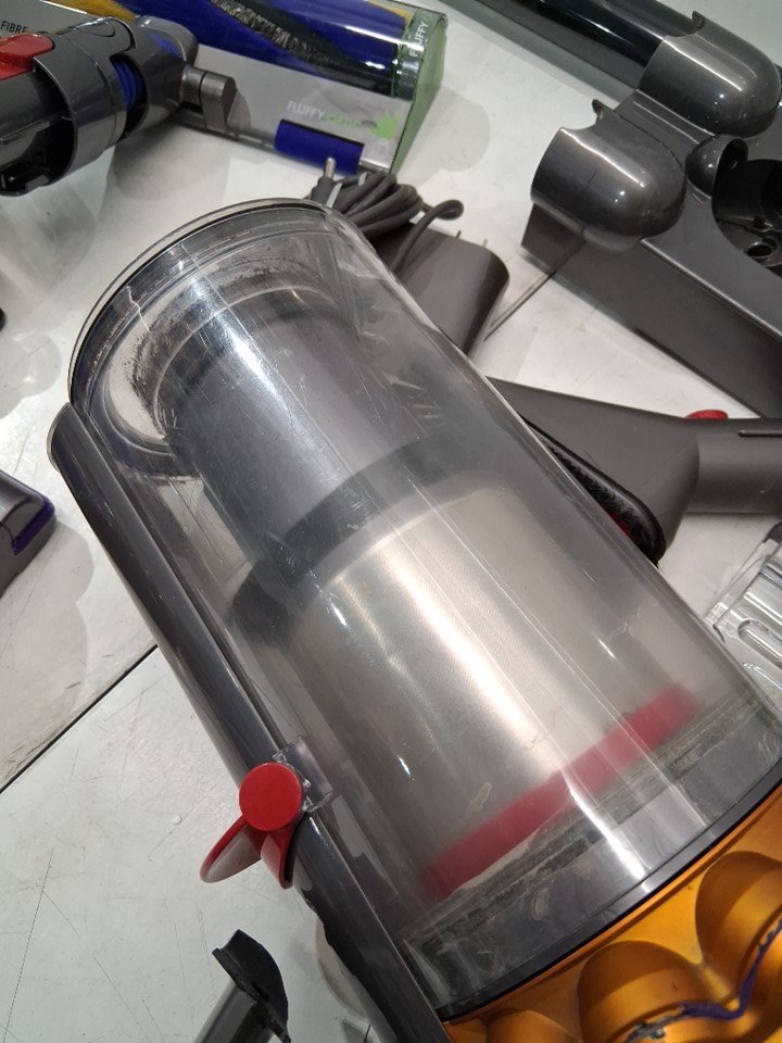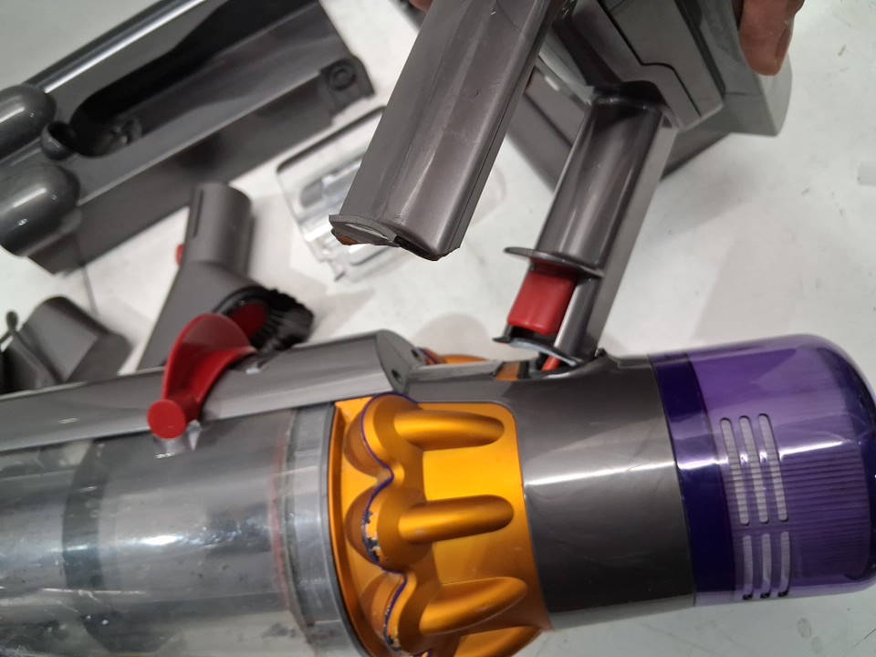 + The handle has snapped off of the dyson + + Item still turns on and has suction + + Item has residual dust/dirt and debris + + Item is missing the stick attachment +