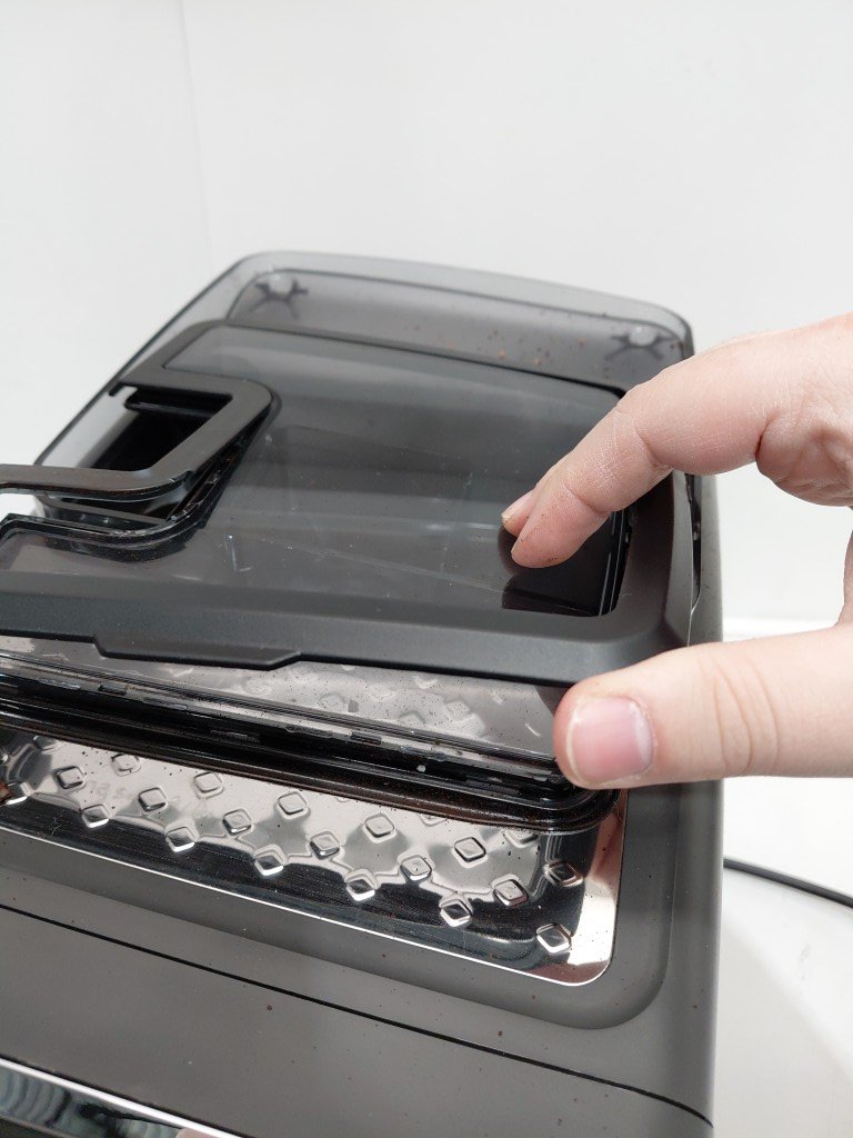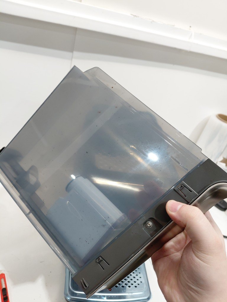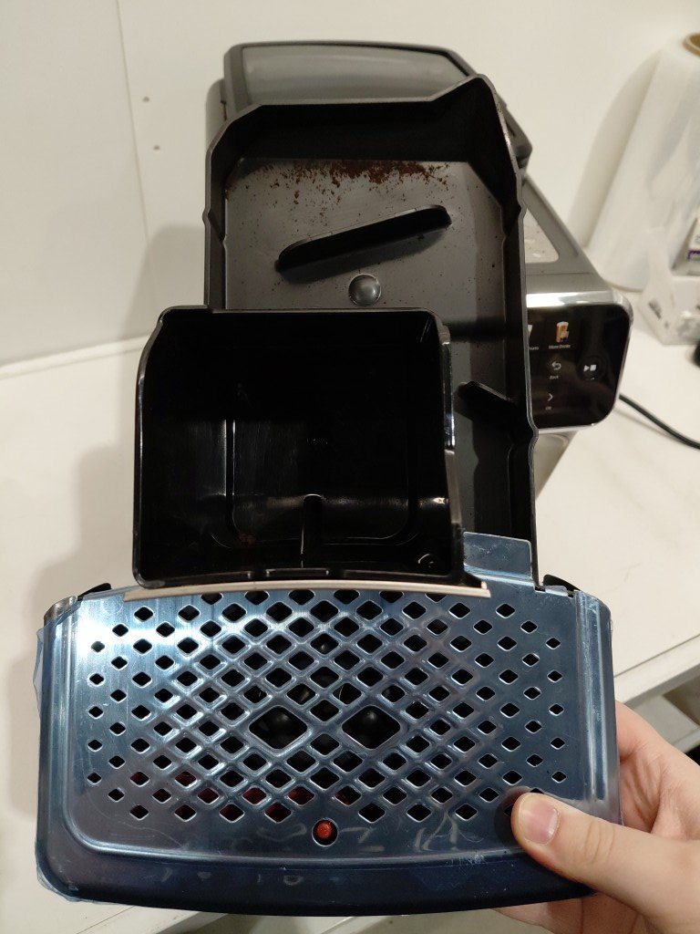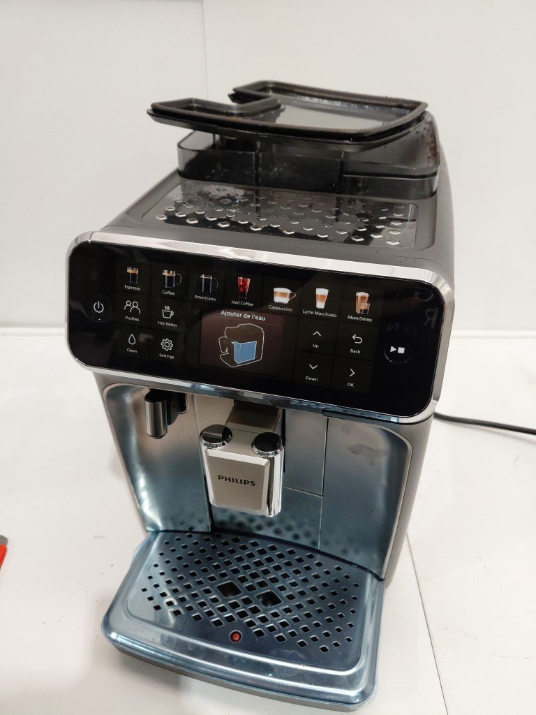 shows signs of previous use (coffee residue) lid is damaged missing bean flap missing lattego cup
