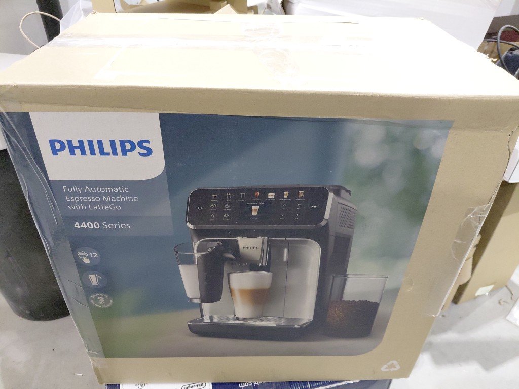 PHILIPS SERIES 4400 LATTEGO ESPRESSO/COFFEE MAKER MACHINE WITH MILK FROTHER and BUILT-IN COFFEE GRINDER - 120V - BLACK/CHROME (MODEL: EP4444)