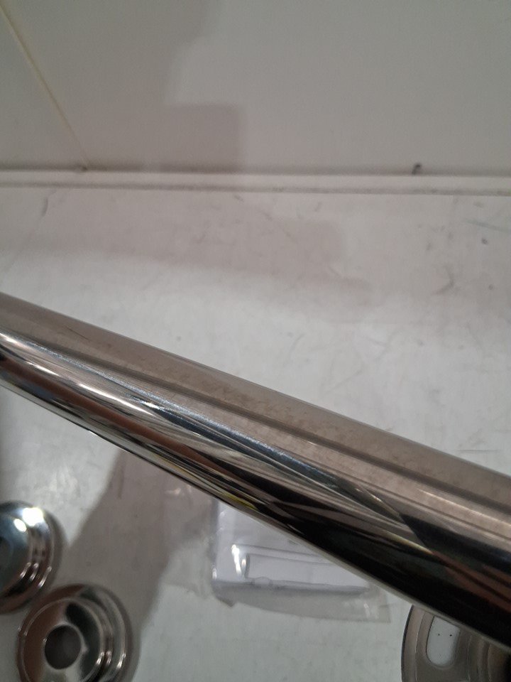 item has some light moisture spots on bar and some markings around assembly points consistent with previous light use general hardware may be required for full installation