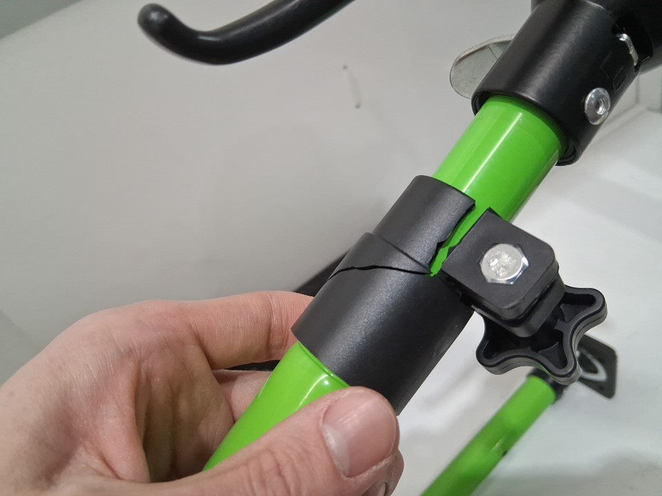 Item arrived with a crack in one of the adjusters which may affect that pole's load bearing capacity, see photos.