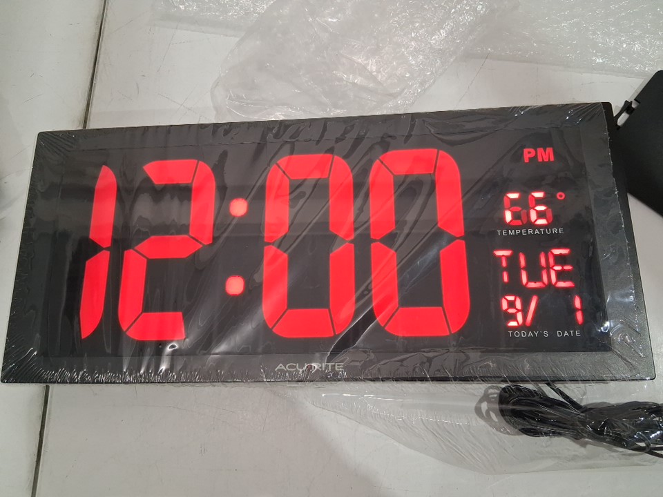 AcuRite Oversized LED Clock with Indoor Temperature, Date and Fold-Out Stand - 18" - red (MODLE: 75I00ma2)