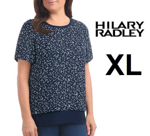 women's hilary radley Short-sleeved two-layer shirt - extra large - navy floral (style:1872488)