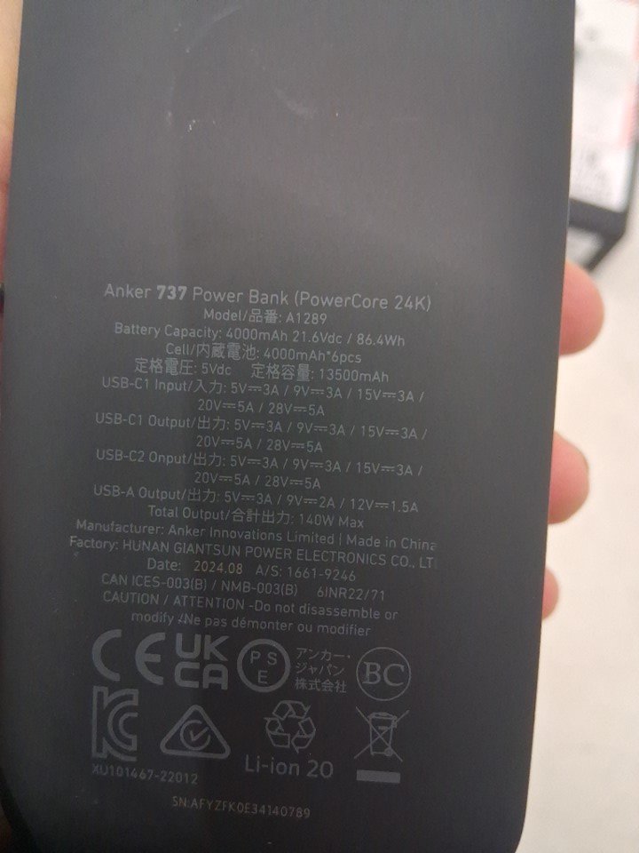 Anker 737 Portable 24,000mAh 3-Port Power Bank (PowerCore 24K) - (Model: A1289)