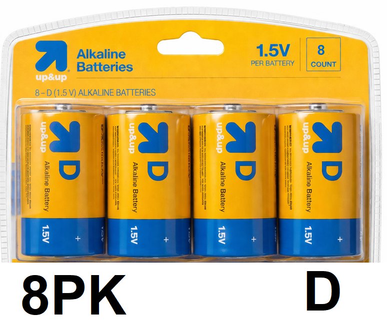 8pk up&up alkaline "d" batteries